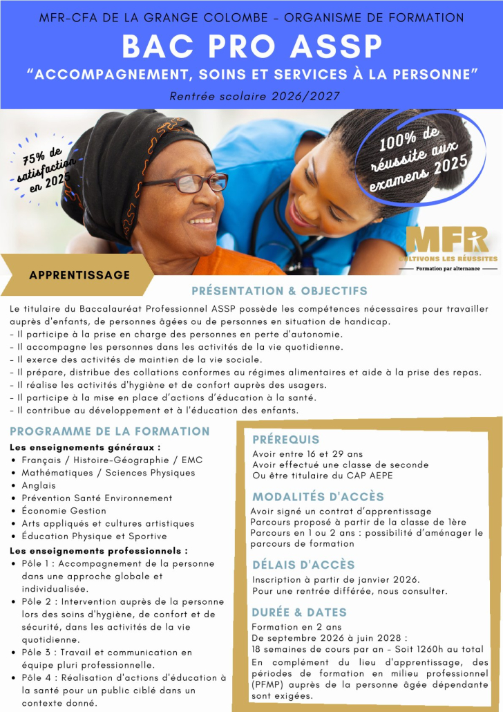 Le BAC Pro A.S.S.P. offre une formation générale et spécifique pour travailler dans le champ des secteurs de la santé et du social. Le professionnel, titulaire, met ses compétences techniques et relationnelles aux services de différents publics : jeunes enfants, personnes âgées en situation de dépendance et personnes malades ou en situation de handicap.