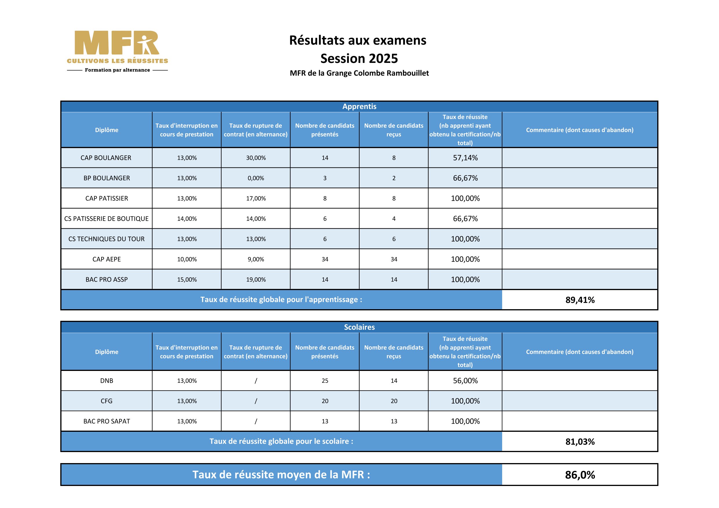 Résultats aux examens 2025