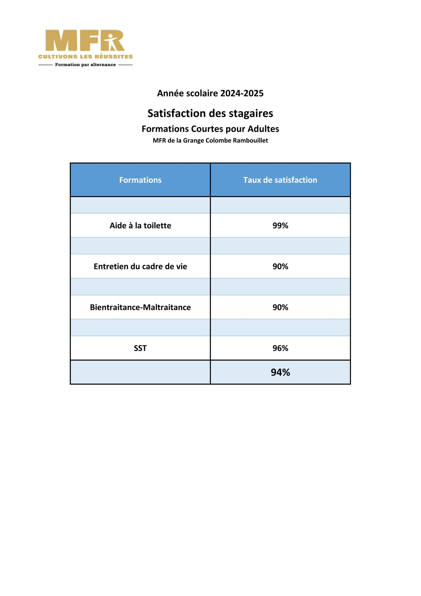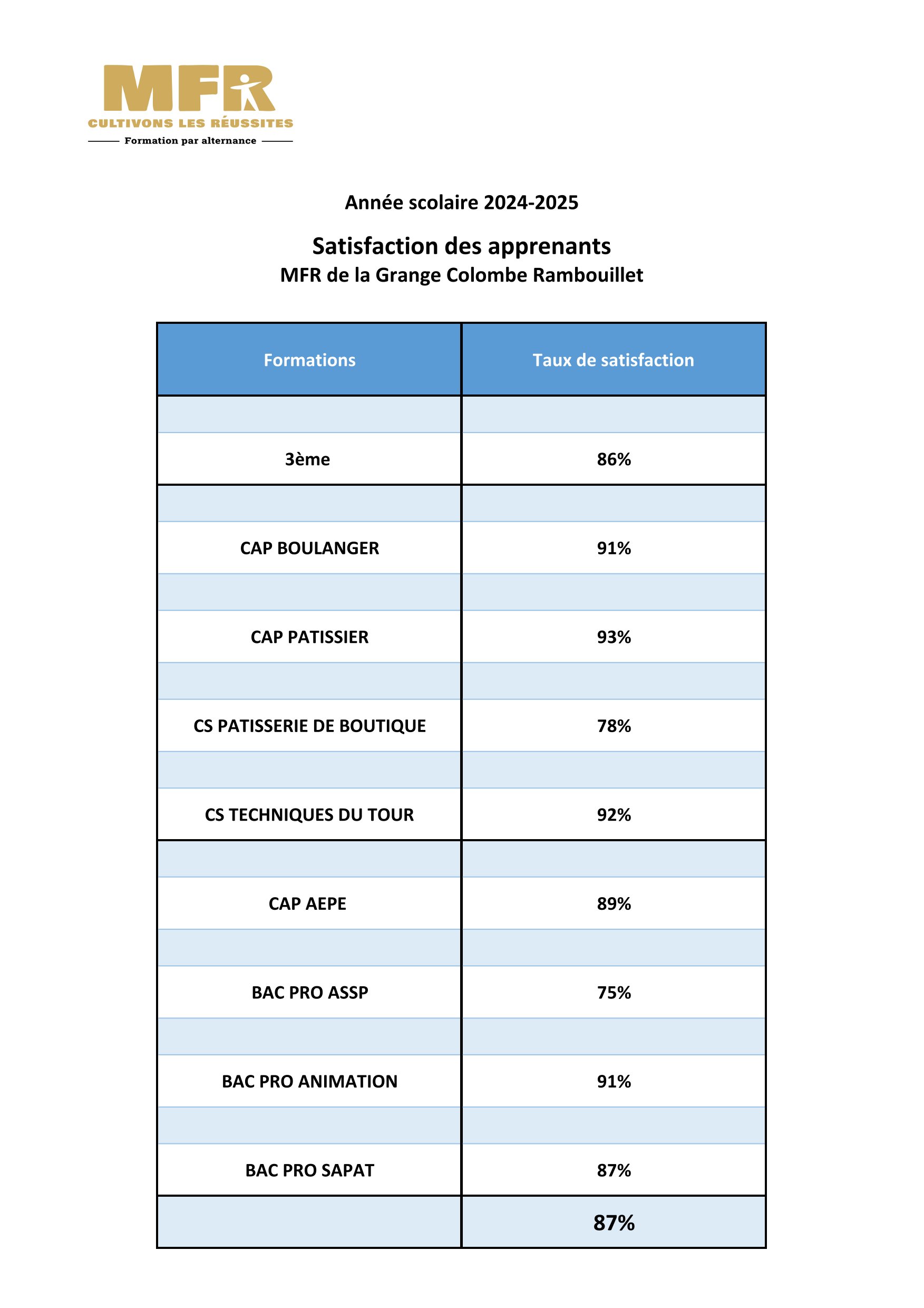 Satisfaction des apprenants